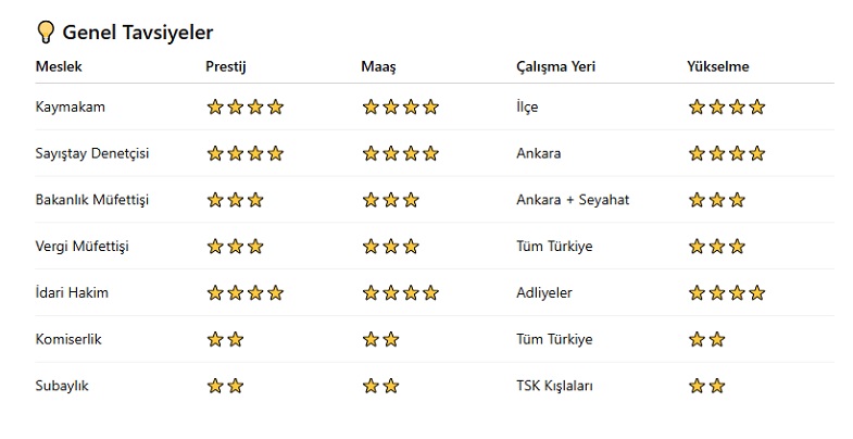 Avantajlar: Devlet kadrosu, hızlı yükselme